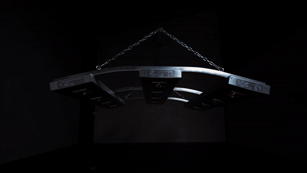 Always hang at 7ft 6inch and use the dimmer to compensate for different height horses. If your average horse is 18th then please hang at 8ft.